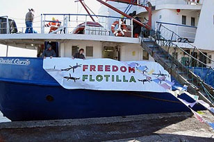 В субботу израильские пограничники задержали очередное судно с гуманитарным грузом для палестинского анклава сектор Газа – Rachel Corrie. Как передает Reuters, судно, входившее в состав гуманитарной миссии «Флотилия свободы», но отставшее от колонны по техническим причинам, было замечено израильскими военными в 55 километрах от берега.