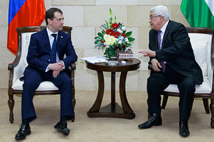 «Мы обсудили возможные перспективы возобновления диалога. Для этого нужно проявлять максимальную сдержанность и соблюдать обязательства. Прежде всего это касается замораживания поселенческой активности Израиля на Западном берегу и в Восточном Иерусалиме», — заявил российский глава на пресс-конференции по итогам встречи с главой Палестинской национальной автономии Махмудом Аббасом. Аббас, в свою очередь, поблагодарил Москву за поддержку палестинских властей.
