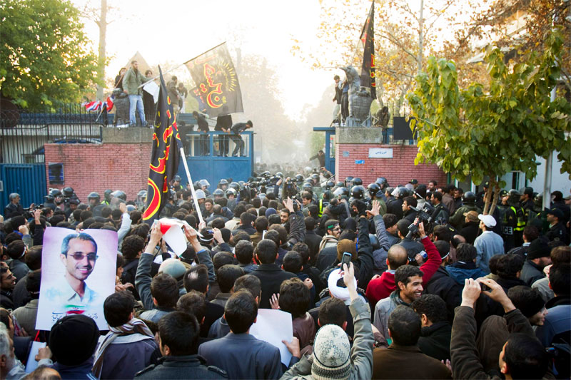 Также митингующие захватили шестерых сотрудников дипмиссии и водрузили на входе в здание иранский флаг. По неподтвержденным сведениям, студенты захватили большое количество секретных документов.