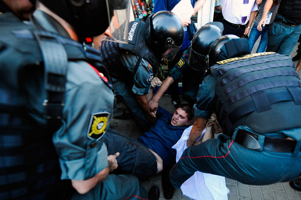 Как только активисты и журналисты группировались в достаточно большом количестве, омоновцы начинали вытеснение собравшихся в сторону 1-й Брестской улицы. Так происходило по меньшей мере четыре раза. Впрочем, спустя некоторое время активисты снова появлялись в районе Триумфальной площади.
