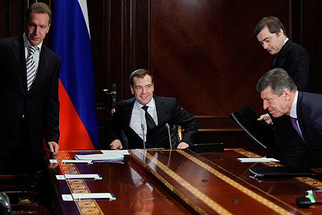 «Такое положение, которое сложилось не сейчас, а, подчеркиваю, достаточно длительный период, не позволяет правительству быть примером, это свидетельствует о нигилизме в такой работе, и, прежде чем требовать правильного положения других, надо разобраться с самим собой», — призвал своих министров в понедельник Медведев.