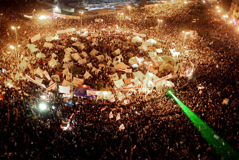 «Люди хотят конца режима!» — скандировала толпа на Тахрир в Каире. Один из протестующих держал плакат с надписью «Братья-мусульмане» (организация запрещена в России) украли революцию», другой призывал египтян к гражданскому неповиновению.
