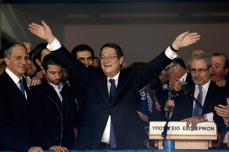 Победу во втором туре президентских выборов на Кипре одержал правоцентрист, лидер оппозиционной партии «Демократический сбор» Никос Анастасиадис. Его кандидатуру поддержали 57,48% избирателей. Избирком уже официально объявил 66-летнего политика избранным президентом республики. Главный соперник Анастасиадиса, бывший министр здравоохранения и представитель правящей Прогрессивной партии трудового народа Кипра Ставрос Малас получил 42,52% голосов. Явка избирателей оказалась чуть ниже, чем неделю назад, когда на Кипре проходил первый этап выборов.