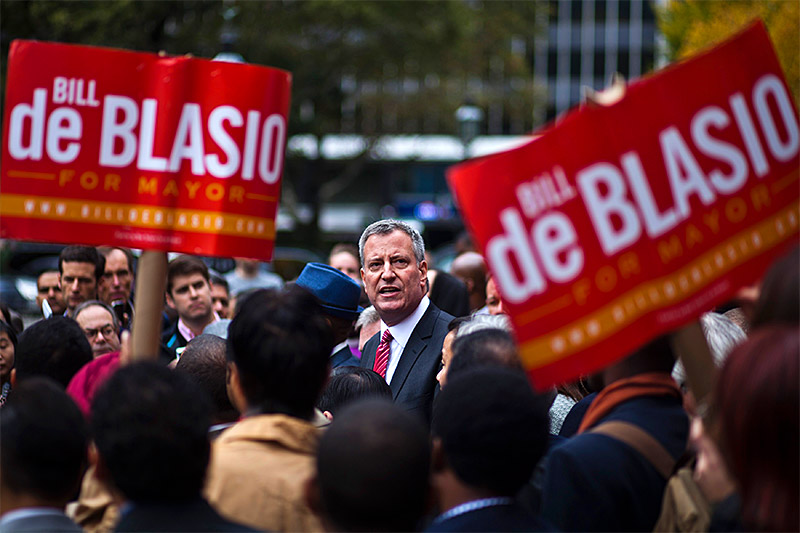 «Де Блазио… позиционирует себя как человека, который порвет с наследием Блумберга, обещая заняться продвижением широкой либеральной повестки дня», — пишет The Washington Post. Напомним, что основные идеи предвыборной программы Блазио — увеличение налога для богатых, обеспечение жильем бедных, развитие социальных программ и увеличение помощи неимущим. Кроме этого кандидат от демократов обещает улучшить взаимоотношения населения с полицией.