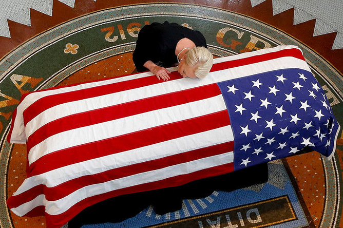 Главные оппоненты и друзья Маккейна сегодня говорили о стойкости сенатора. Церемония же официцально завершилась, тело сенатора увезли.