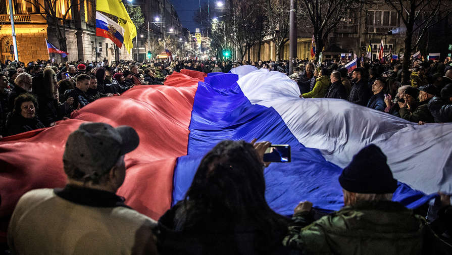 «Да здравствует Сербия! Да здравствует Россия», — кричали собравшиеся вечером 4 марта.