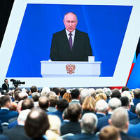 Послание завершено. Звучит гимн России.