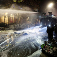 К утру полиция и спецназ разогнали протестующих и вытеснили их от парламента и с площади Свободы. Сотрудники городской службы благоустройства приступили к разбору баррикад.