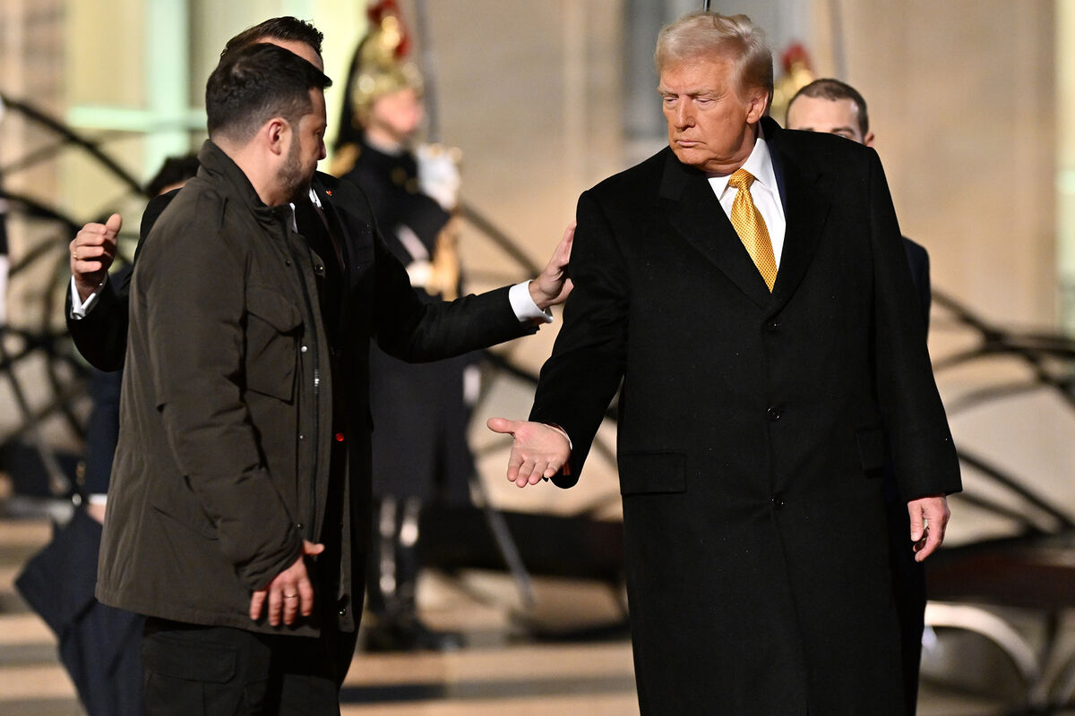 Владимир Зеленский и Дональд Трамп во время встречи в Париже, 7 декабря 2024 года
