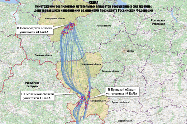 Все дроны были сбиты российскими военными. 49 беспилотников уничтожили над территорией Брянской области, 41 — над Новгородской и один — над Смоленской. Атака продолжалась до 08:30 29 декабря — суммарно она длилась около 13 часов.