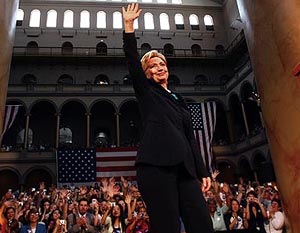 В минувшую субботу сенатор от Нью-Йорка Хиллари Клинтон официально склонила голову перед своим соперником Бараком Обамой: теперь Демократическую партию на ноябрьских выборах президента США будет представлять именно он. В своей глубоко прочувственной речи в аудитории Национального музея строительства в Вашингтоне бывшая первая леди призвала все 18 млн американцев, проголосовавших за нее в ходе первичных выборов, отдать теперь свои голоса за Обаму.