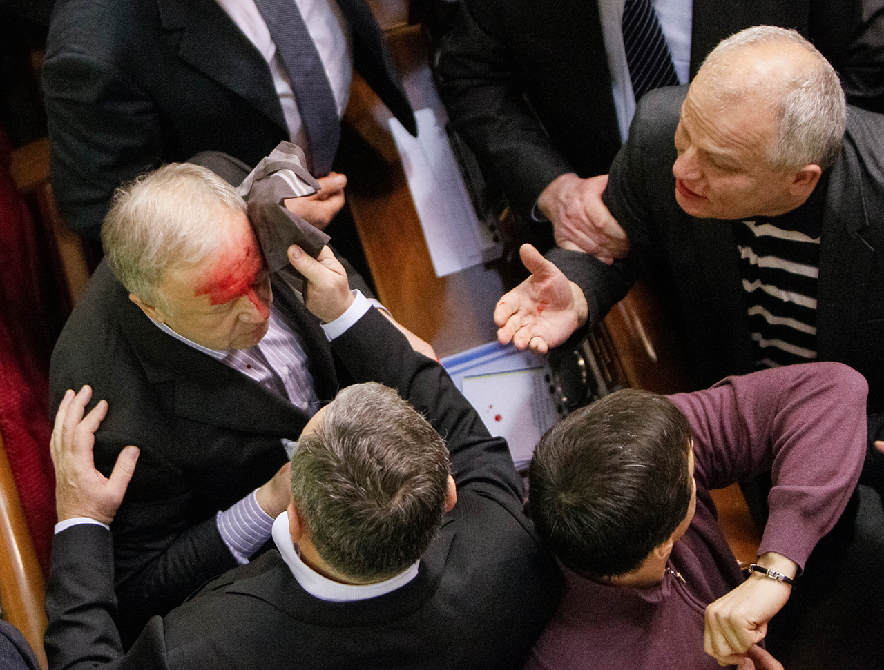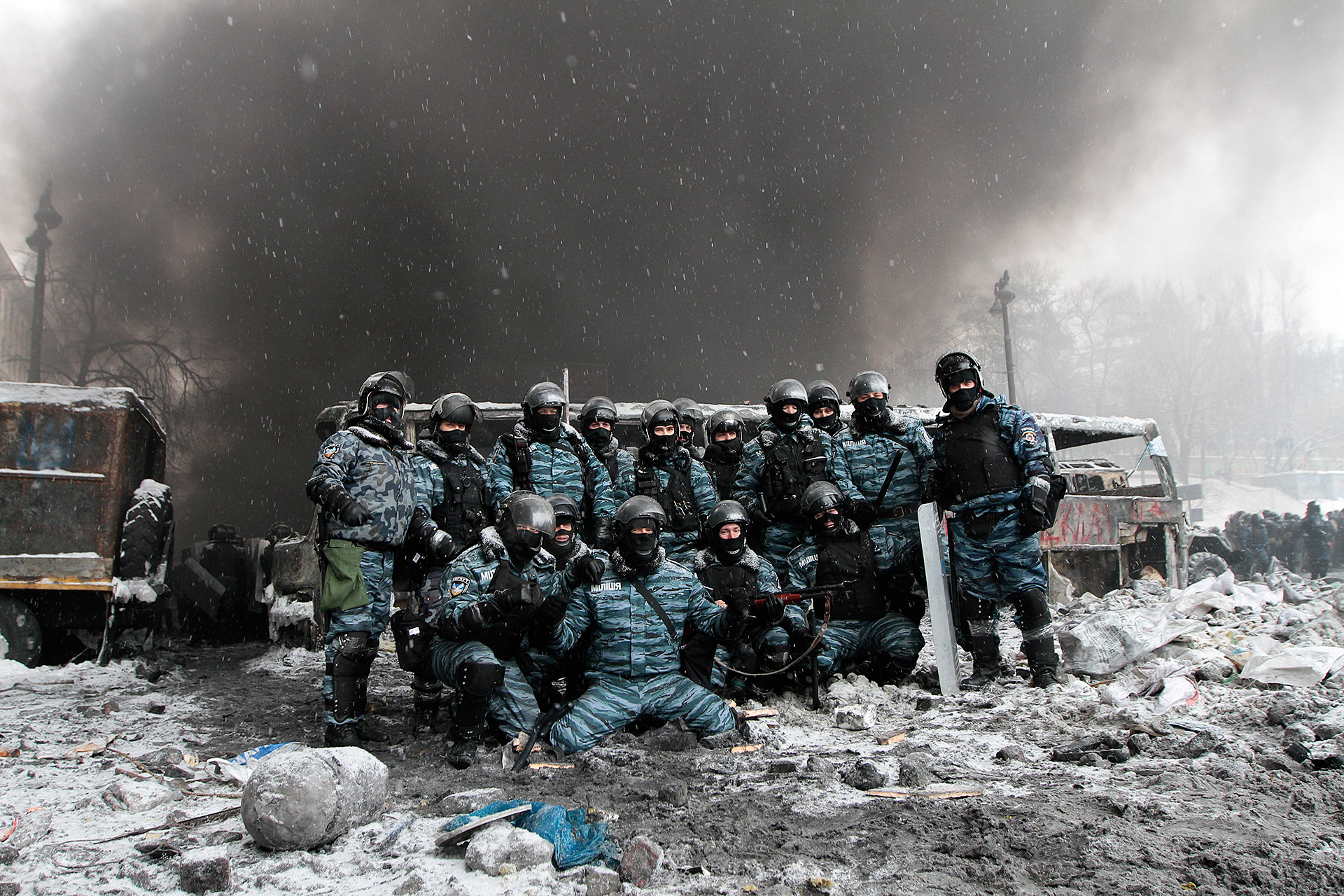 Когда мы оказались на месте, у здания кабинета министров, первое, что я увидел, — это были два бойца «Беркута», сопли текут, слезы. Кругом слышны взрывы, крики. «Ребята, там газы применяют активно», — крикнул кто-то из милиционеров. Я сразу дал команду, мы одели противогазы и заменили ребят, которые стояли в первой шеренге. Они были без противогазов, и их как мух травили, они выпадали из строя. Мы закрыли проход в здание. В этот момент начиналась самая активная попытка прорыва в кабинет министров. Толпа, примерно шесть-семь тысяч человек, стала напирать, милиционеров пытались вырвать из строя. Подходили депутаты Рады, кричали: «Я народный депутат Украины!», срывали нашим бойцам маски, противогазы с лица, брызгали газом... Потом митингующие сломали шлагбаум. Начали кидать в нас кирпичами, наносили удары... Мы были в шоке… Нас пытались убить — били куда попало и чем попало.
