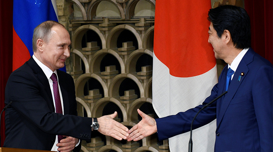 Президент России Владимир Путин и премьер-министр Японии Синдзо Абэ начали российско-японские переговоры на высшем уровне, передает корреспондент «Газеты.Ru».