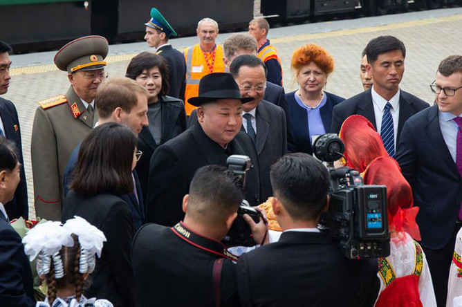 Отмечается, что глава КНДР в ходе церемонии на красном ковре обменялся рукопожатиями с главой Минвостокразвития Александром Козловым. Приветствие сопровождалось выступлением оркестра, который исполнил гимны России и Северной Кореи.