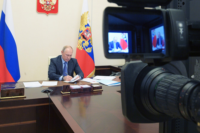 Путин предложил собравшимся на совещании по видеосвязи перенести встречу на час, до 16.30 мск из-за изменения в рабочем графике.