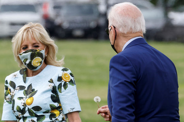 Президент США Джо Байден на лужайке возле Белого дома подарил своей жене Джилл одуванчик.