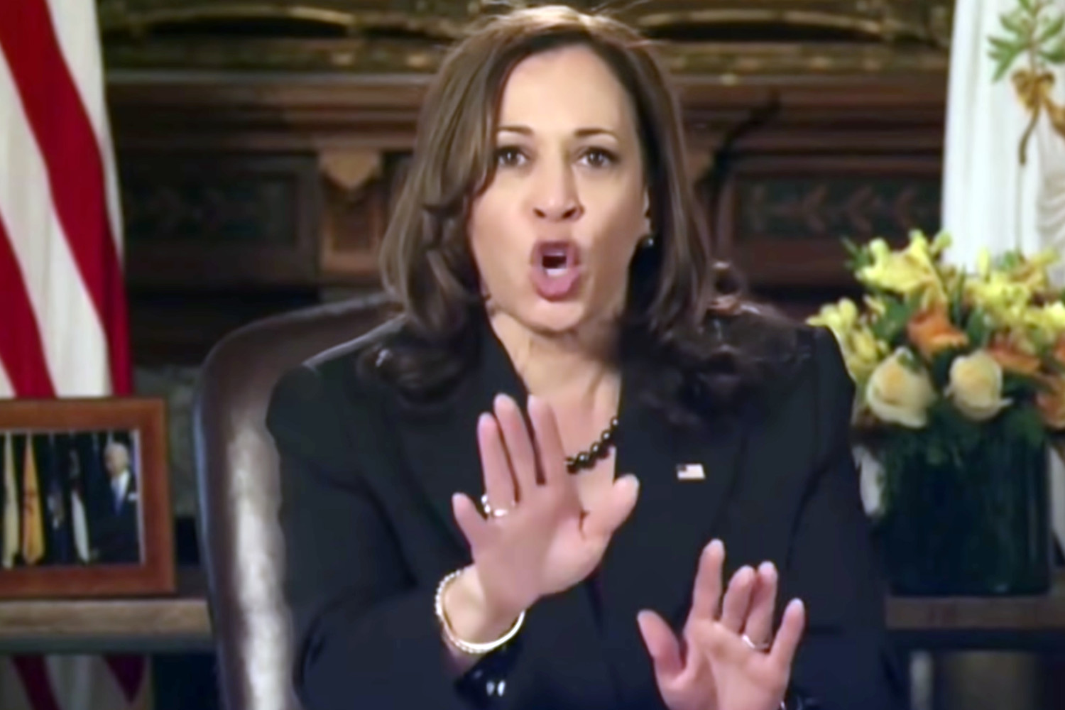 Затем она снова повторила, что президентом является Джо Байден. При этом вице-президент повысила голос и начала активно жестикулировать, грозя пальцем.