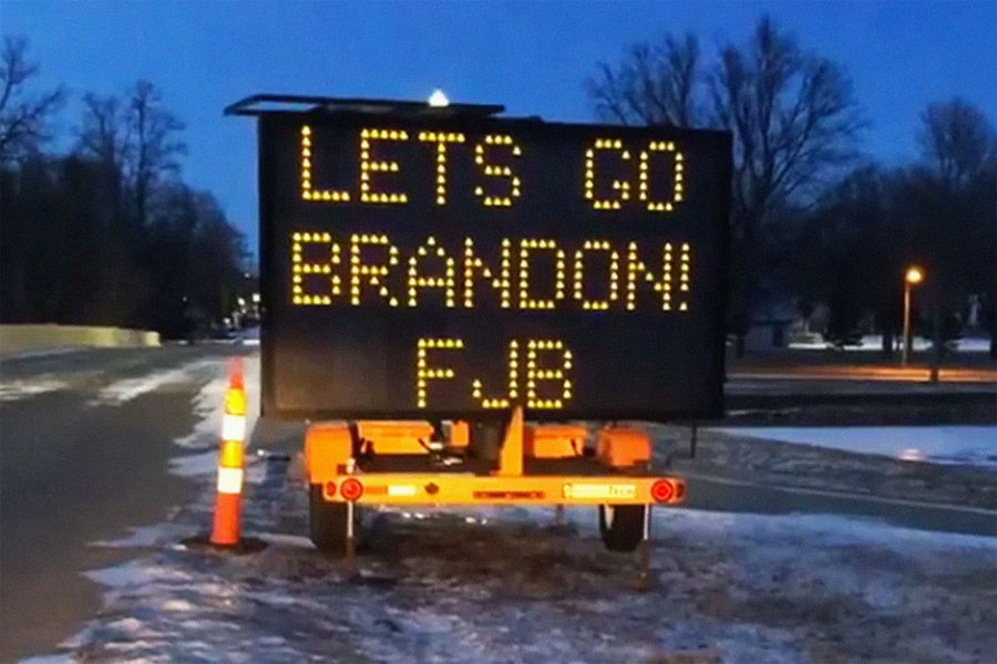 В американском штате Южная Дакота появился электронный дорожный знак с надписью Let's go Brandon — эвфемизм, которым заменяют нецензурное ругательство в адрес президента США Джо Байдена.