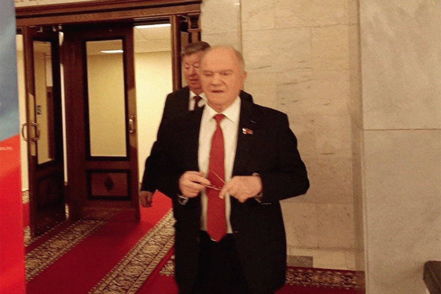Председатель КПРФ Геннадий Зюганов приехал в Государственную думу, чтобы проголосовать за признание независимости ДНР и ЛНР, сообщает РИА «Новости».