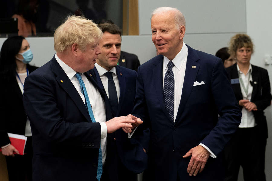 Президенты США и Франции Джо Байден и Эммануэль Макрон вместе с премьерами Италии и Великобритании Марио Драги и Борисом Джонсом, а также канцлером Германии Олафом Шольцем призвали Россию вывести войска с Украины. Об этом журналистам сообщил официальный представитель кабмина ФРГ Штеффен Хебештрайт, передает ТАСС.