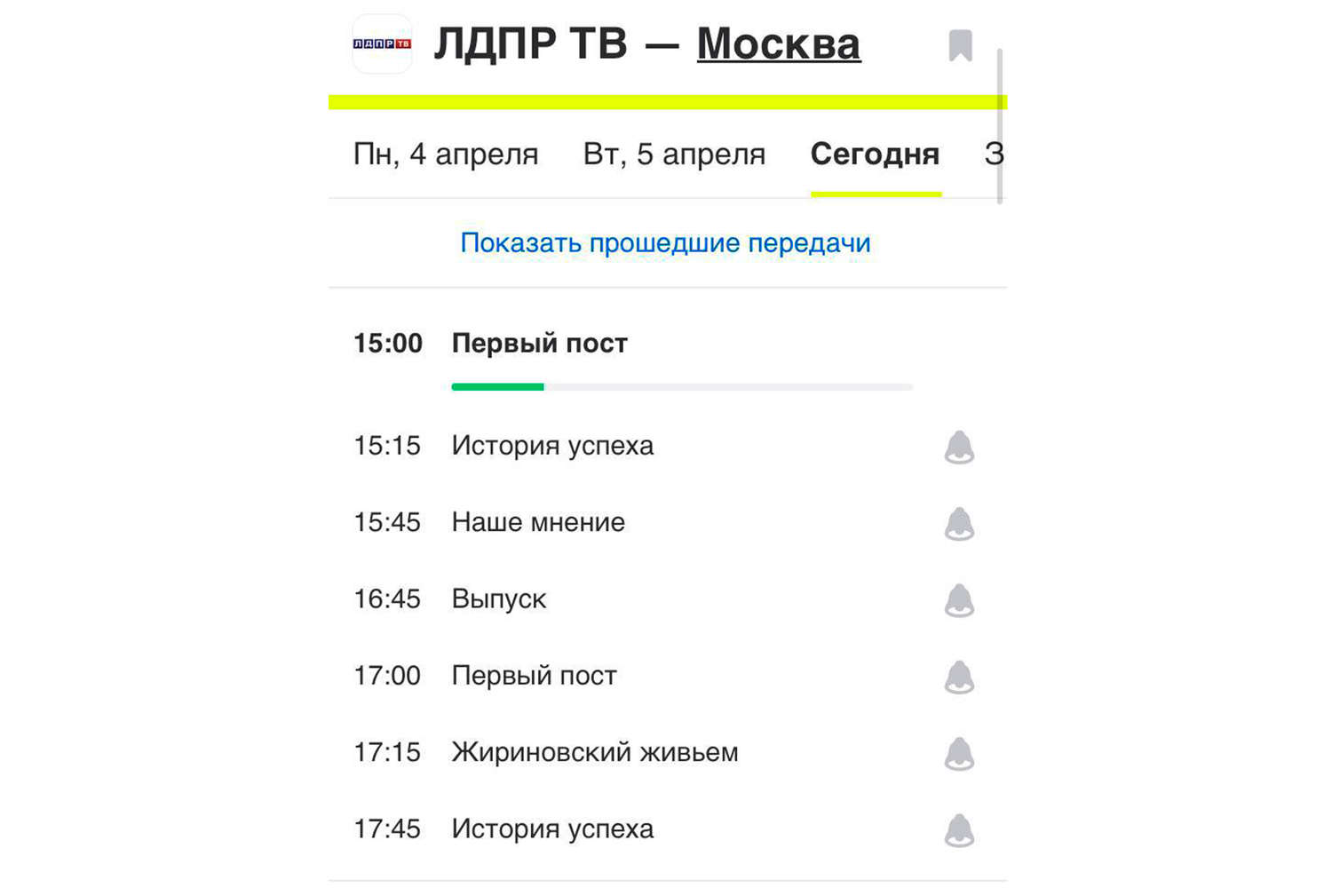 В социальных сетях обратили внимание на телепрограмму партийного канала «ЛДПР ТВ», где в день смерти главы ЛДПР должны транслировать передачу «Жириновский живьем». Как рассказал «Газете.Ru» руководитель пресс-службы ЛДПР Александр Дюпин, программа не выходит уже две недели. Он предположил, что передача числилась как заявленная, поэтому операторы могли не поменять сетку вещания.