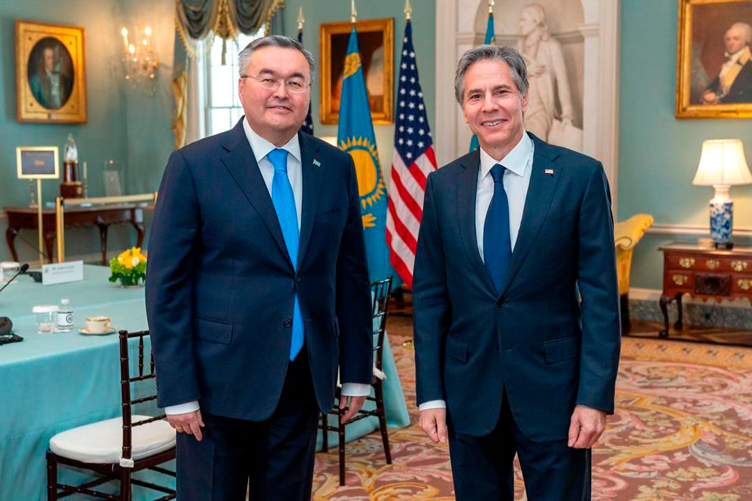 Госсекретарь США Энтони Блинкен на встрече с министром иностранных дел Казахстана Мухтаром Тлеуберди заявил, что Вашингтон готов помочь этой стране в проведении политических и экономических реформ. Об этом сообщает пресс-служба МИД центральноазиатской республики.