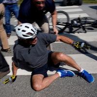 Репортер газеты, который был свидетелем инцидента, сказал, что Байден снова сел на велосипед и умчался, — вероятно, он не получил никаких травм.