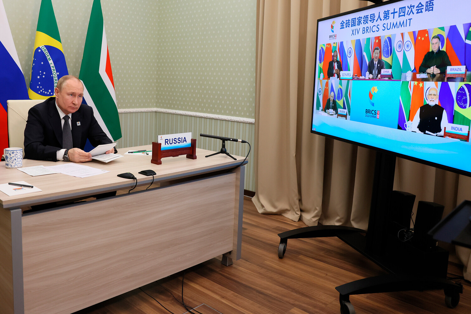 «По-моему, французской королеве Марии-Антуанетте приписывают то, что, глядя из окна своего дворца на толпу голодных бастующих граждан, она равнодушно произнесла когда-то: «Ну если у них нет хлеба, пусть едят пирожные», — заявил Путин в ходе XIV саммита стран БРИКС, проходящего по видеосвязи.