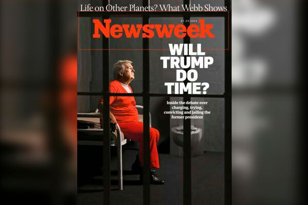 Пятничный выпуск (29 июля) журнала Newsweek выйдет с обложкой, на которой изображен экс-президент США Дональд Трамп, облаченный в тюремную форму и сидящий за решеткой.