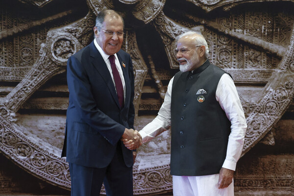 Премьер-министр Индии Нарендра Моди подарил министру иностранных дел России Сергею Лаврову шарф с символикой G20. Об этом сообщает РИА Новости.