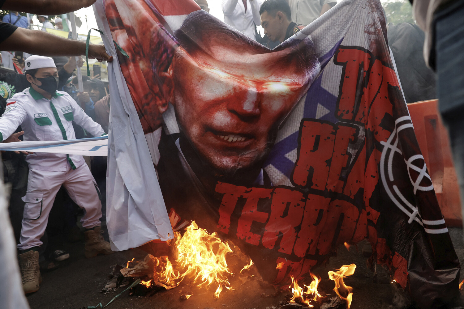 В Индонезии во время акции в поддержку Палестины народа перед посольством США в Джакарте демонстранты сожгли портреты президента США Джо Байдена и премьера Израиля Биньямина Нетаньяху. Об этом сообщает индонезийский журнал Tempo.