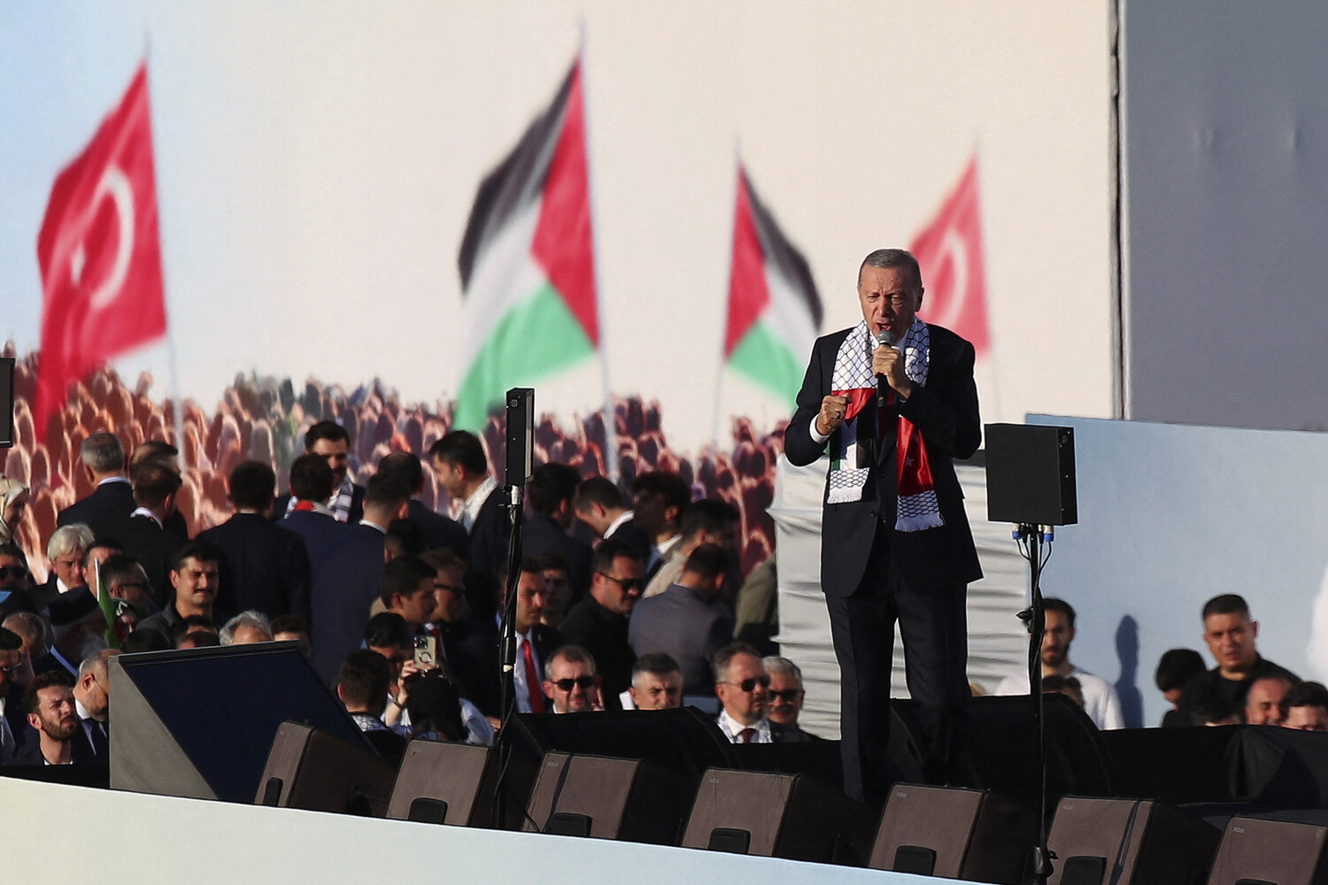 На массовом митинге в поддержку Палестины, который проходил в Стамбуле в аэропорту Ататюрка, Эрдоган также назвал происходящее в секторе Газа резней, за которую ответственен Запад. Также он аявил, что Анкара объявит Израиль военным преступником. Он назвал Израиль оккупантом и группировкой, отметив, что палестинское движение ХАМАС не является террористической организацией.