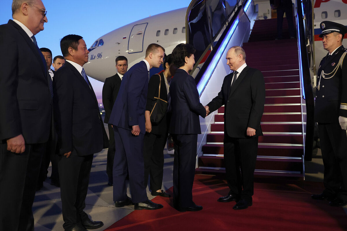 В аэропорту российского лидера встретила рота почетного караула. После торжественной церемонии встречи кортеж президента России в сопровождении отряда мотоциклистов направился в город.