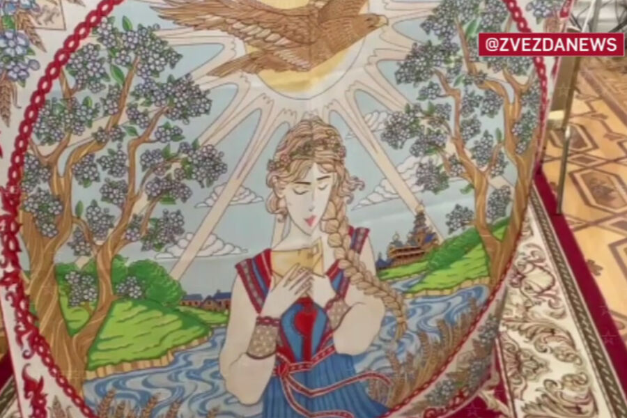 По данным Telegram-канала, платок с персонажем известной песни президенту передала руководитель АНО «Комитет семей воинов Отечества» Юлия Белихова.
