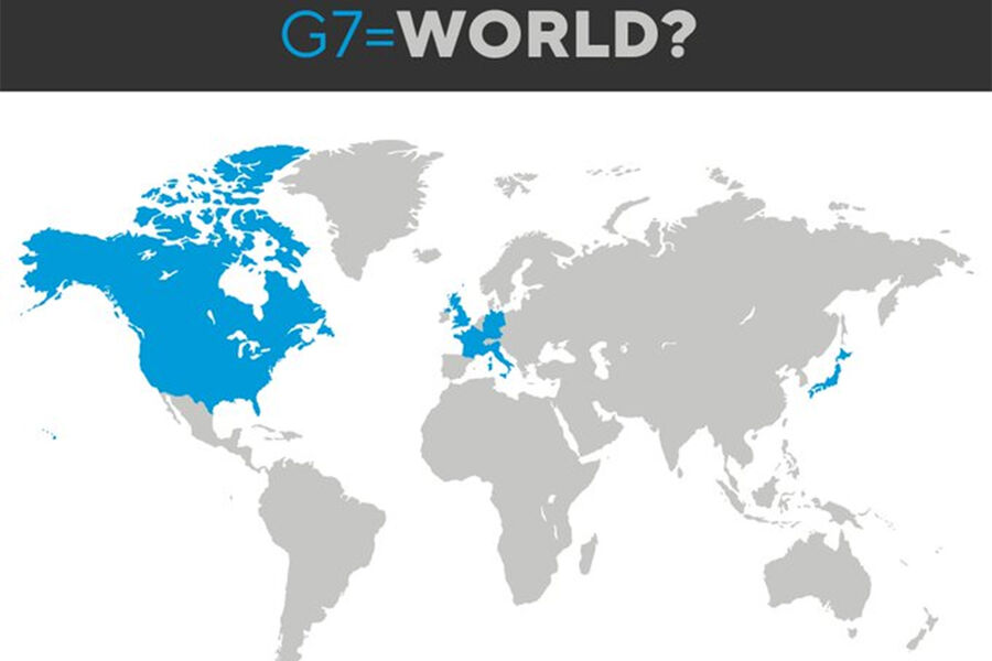 «G7 = весь мир?» — задалась вопросом дипломат, показав, как мало места страны G7 занимают на карте мира.