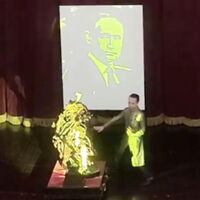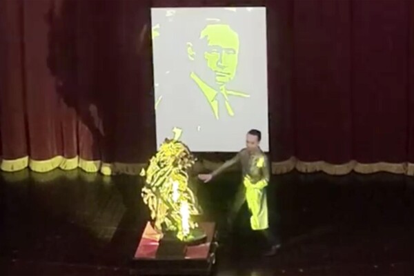 Портрет президента Российской Федерации Владимира Путина, образованный тенью от вращения скульптур берез и коня, показали на концерте в честь визита российского лидера на сцене Большого оперного театра в Ханое. Об этом сообщает РИА Новости.