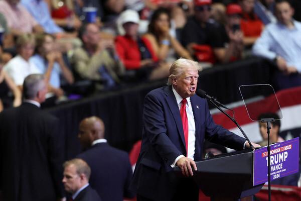 Экс-президент США и кандидат на пост главы государства Дональд Трамп на первом после покушения митинге своих сторонников в городе Гранд-Рапидс, штат Мичиган, появился без белой повязки на правом ухе, ставшей символом его поддержки после покушения. Об этом сообщает ТАСС.