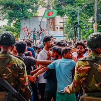 Массовые волнения студентов охватили Бангладеш в конце июля в знак протеста против системы квот на трудоустройство в государственных органах для членов семей ветеранов, якобы выгодной сторонникам премьера Хасина. Демонстрации постепенно переросли в беспорядки и столкновения с полицией, для подавления акций привлекли армию. В начале августа премьер Бангладеш выехала из страны, что привело к остановке протестов. Впоследствии в стране начало действовать временное правительство во главе с Мухаммадом Юнусом.