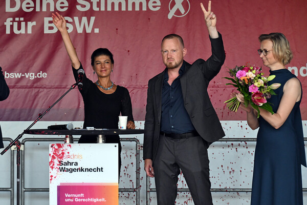 Welt: обливший Сару Вагенкнехт краской мужчина выкрикивал что-то об Украине