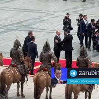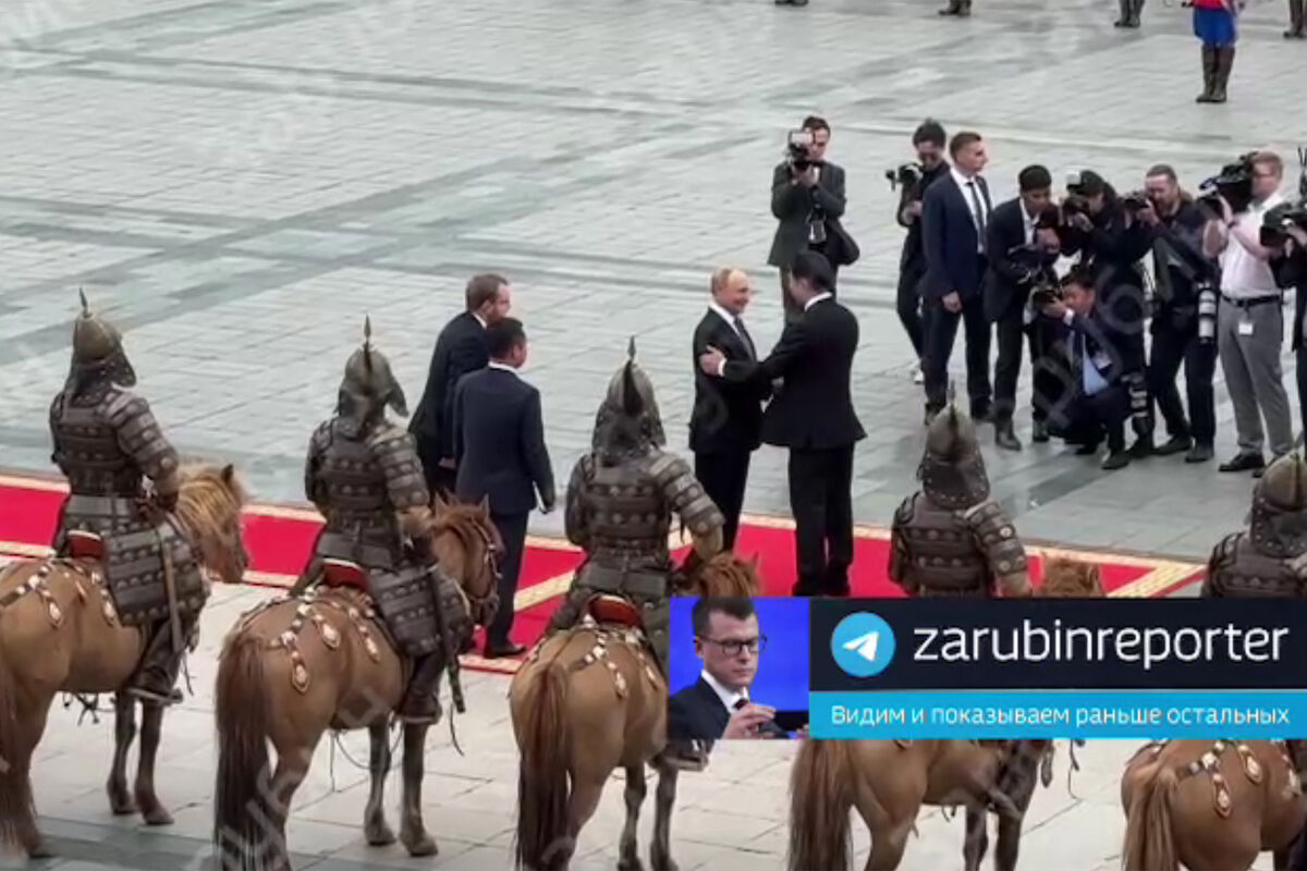 Путин приехал на встречу с президентом Монголии Ухнаагийном Хурэлсухом на «Аурусе». Коллега лично встретил главу РФ на центральной столичной площади Сухэ-Батора, где находятся резиденции всех главных государственных структур Монголии. Маленькая девочка вручила российскому лидеру букет цветов.