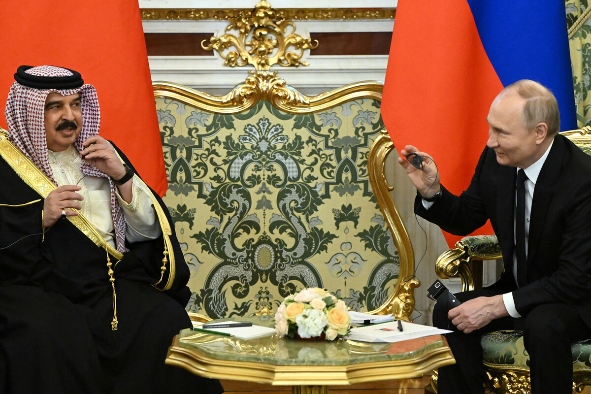 Король Бахрейна Хамад бен Иса Аль Халифа посетил Россию 22 мая по приглашению Путина. Переговоры состоялись на следующий день. Главы государств обсудили состояние и перспективы сотрудничества стран в торгово-экономической, энергетической и гуманитарной областях, а также подняли актуальные вопросы международной повестки дня, в том числе конфликт Израиля и Палестины.