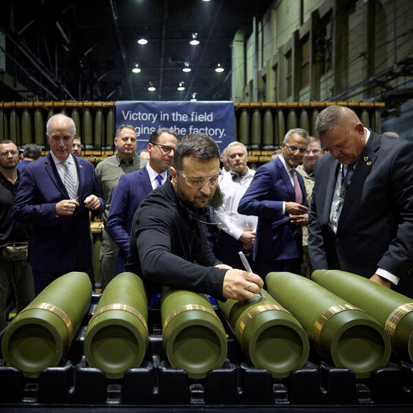 В воскресенье Зеленский начал визит в США с посещения завода по производству боеприпасов для ВСУ в городе Скрэнтон, штат Пенсильвания. Он попросил поставить Украине больше снарядов.