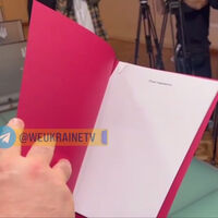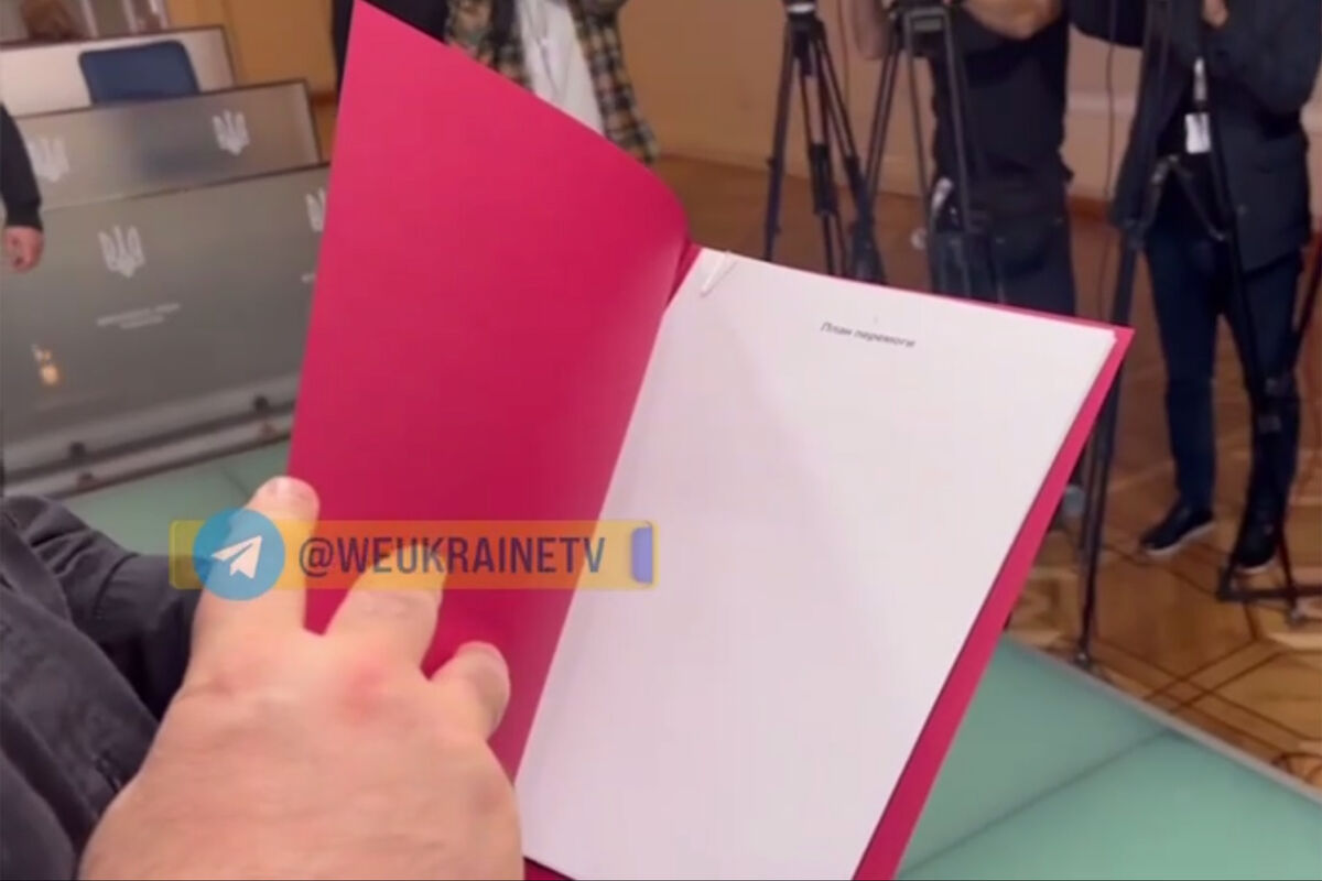 Спикер Верховной рады Руслан Стефанчук показал папку с «планом победы» президента Украины Владимира Зеленского. Видео показали украинские телеканалы.