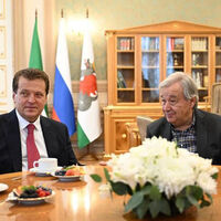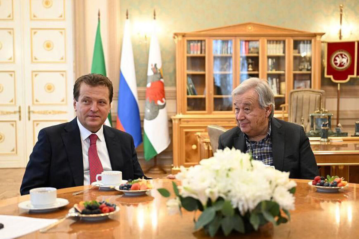 «Ильсур Метшин принял генерального секретаря ООН Антониу Гутерриша, прибывшего в наш город для участия в саммите БРИКС», — говорится в сообщении.