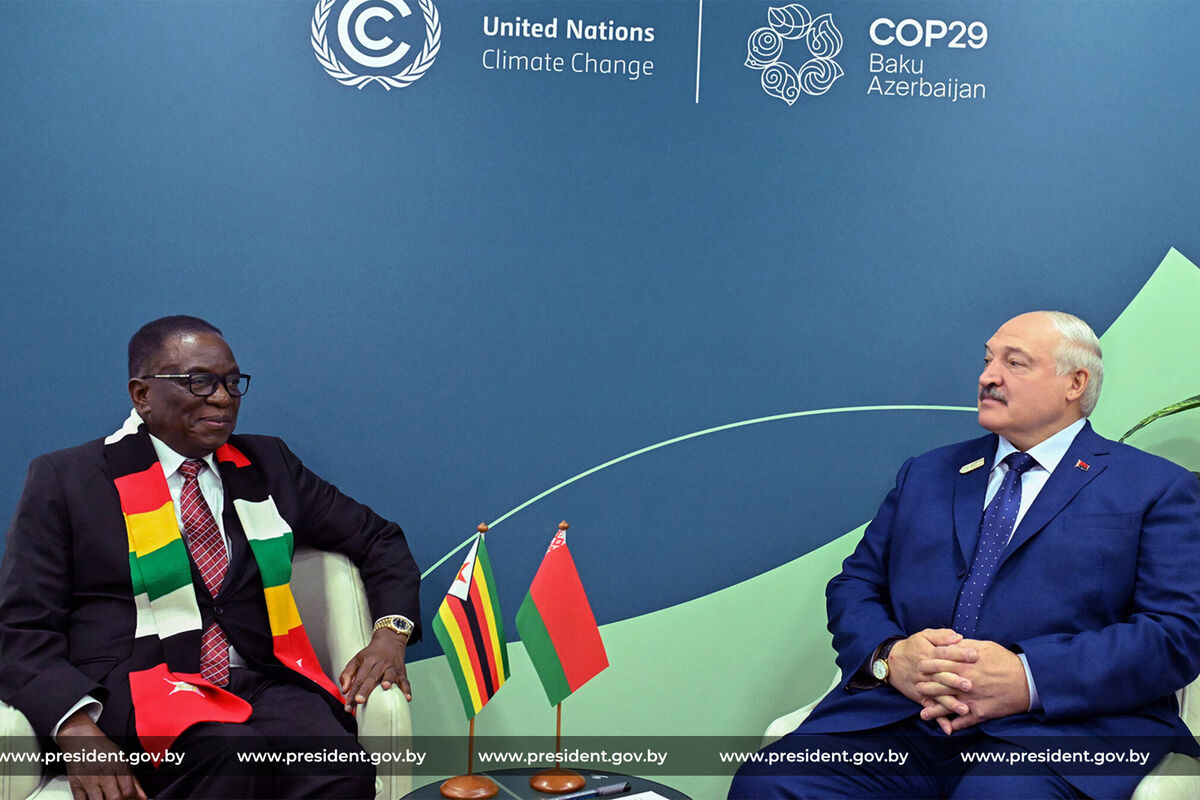 Президент Белоруссии Александр Лукашенко встретился с зимбабвийским коллегой Эммерсоном Мнангагвой, который назвал белорусского лидера своим молодым братом и сравнил его с ребенком. Кадры встречи опубликовал Telegram-канал «Пул Первого».