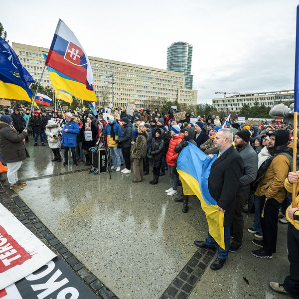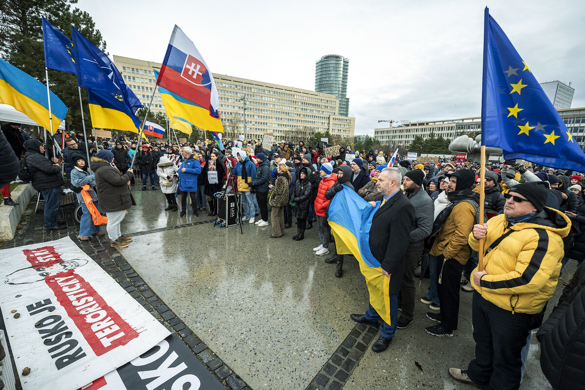 Телеканал отмечает, что организаторами митинга выступили сторонники поддержки Украины, обвинившие Фицо в продвижении влияния России.