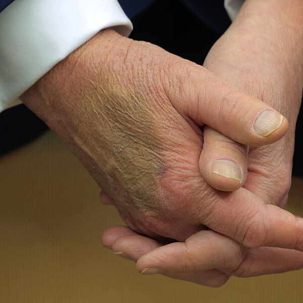 Сейчас политику 78 лет. Фотография большого желтого пятна на тыльной его стороне ладони появилась после встречи Трампа с президентом Франции Эммануэлем Макроном в Белом доме.