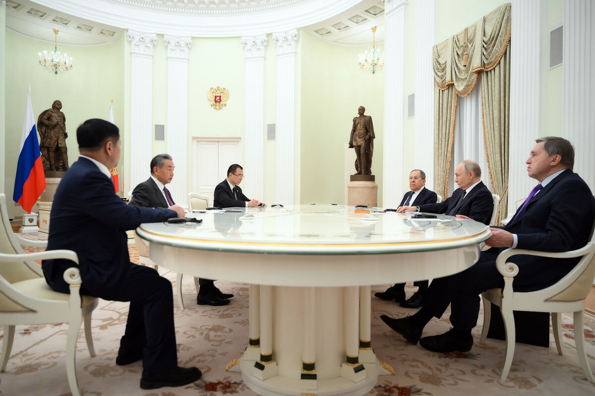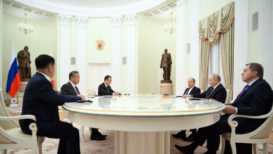 Перед началом разговора российский лидер поприветствовал главу МИД Китая и отметил, что рад его видеть.