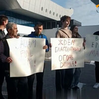 Корреспондент агентства отметил, что участники акции держат плакаты с надписями «Спасем Благодатный огонь» и «Ждем Благодатный огонь дома!». Таким образом активисты выразили поддержку архиепископу Маркеллу.
