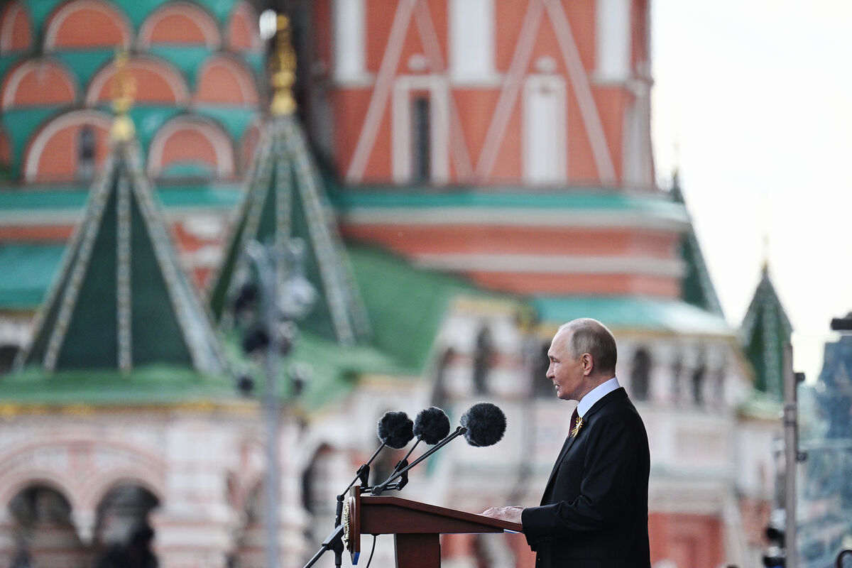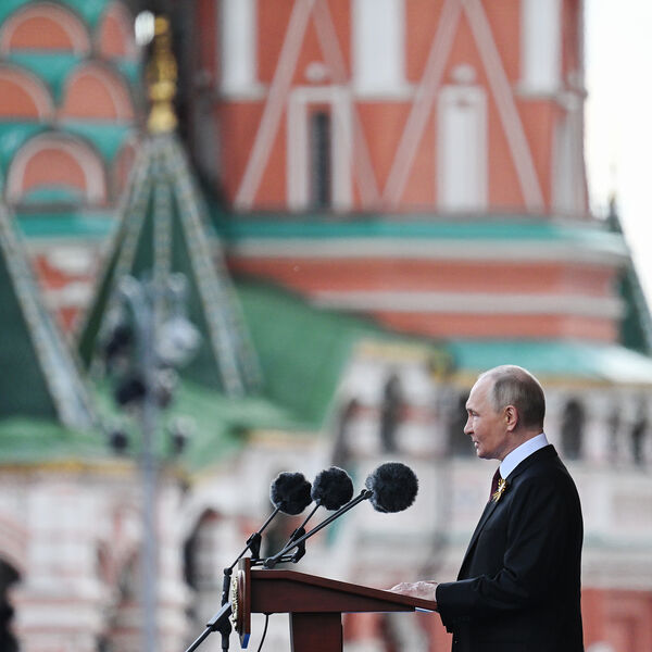 «Поздравляю вас с 80-летием Победы в Великой Отечественной войне», — сказал российский лидер с трибуны на Красной площади в Москве.
